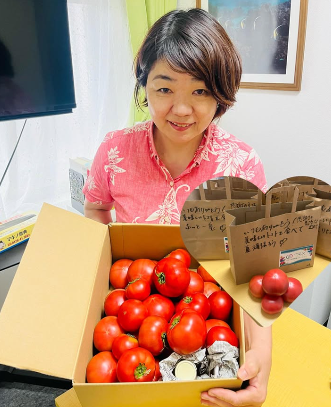 認定同期が北海道でトマト🍅作りお取り寄せしましたー♪甘くて、美味しい😃げんちゃん、ありがとう💕スタッフへおすそ分け😊濃厚なメッセージ付きで笑 -