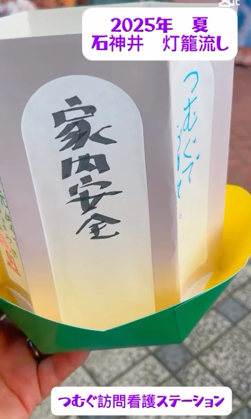 こんにちは😃先週末に地元石神井の灯籠流しの夕べへつむぐでお看取りさせて頂いた方々を思い浮かべ❗️